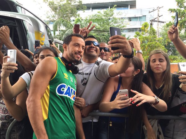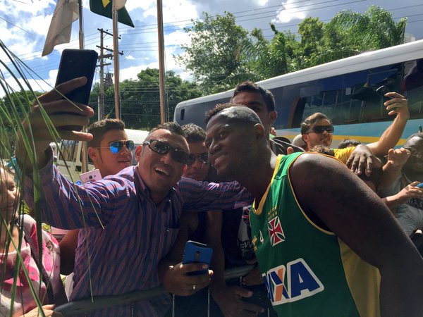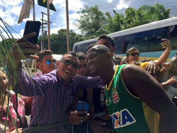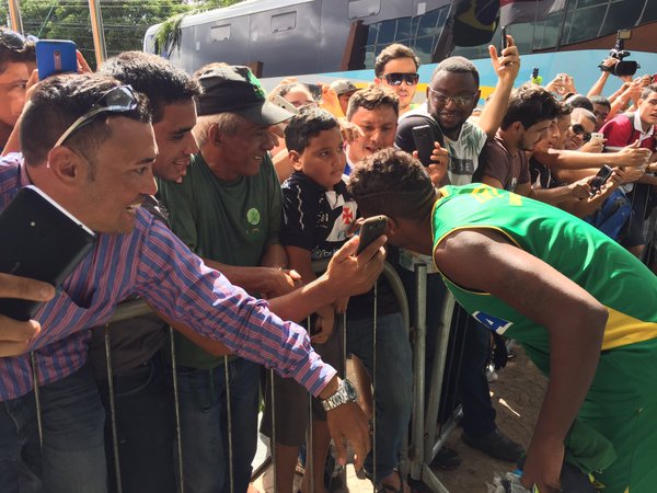Thalles dá atenção aos fãs na saída para o treino. #gevas