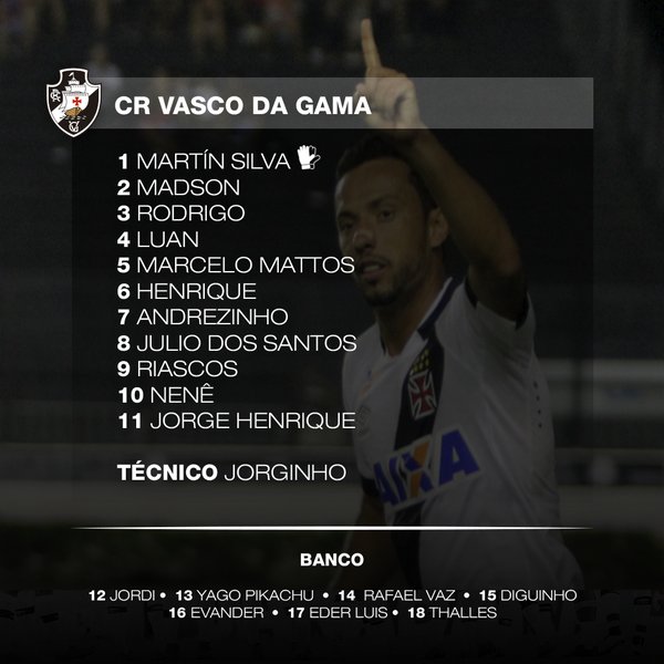 Vasco da Gama @vascodagama Escalação oficial do Vasco para o clássico contra o Fluminense. #FLUxVAS