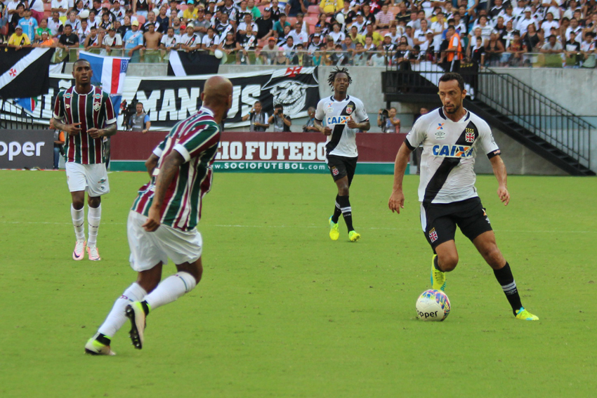 O Vasco suportou a pressão do Fluminense e passou a aproveitar os espaços dados pelos tricolores. Primeiro, Nenê entrou na área e chutou com perigo. Em seguida, aos 36 minutos, Eder Luís arriscou de longe e acertou a trave de Diego Cavalieri.