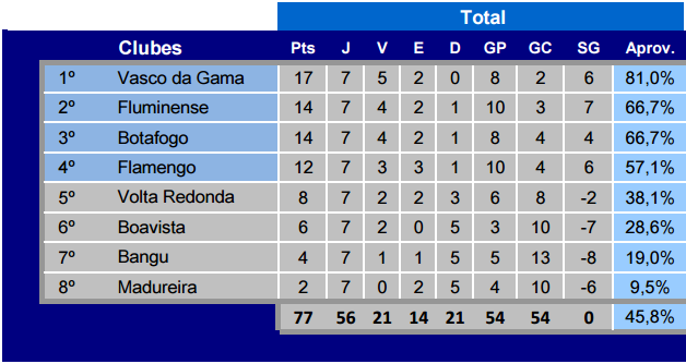 Fonte: NETVASCO (texto), FFERJ (classificação, artilharia e próximos jogos), FutRio (resultados, autores dos gols)
