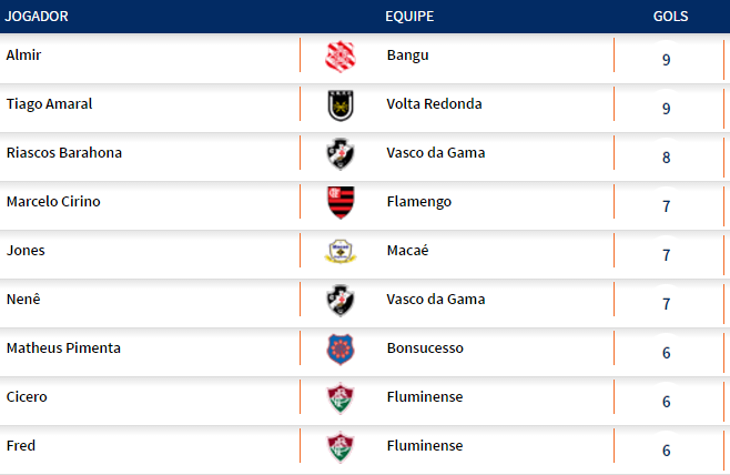Riascos chegou a 8 gols e é o 3º colocado na artilharia do Estadual, atrás de Tiago Amaral, do Volta Redonda, e Almir, do Bangu, ambos com 9 gols.