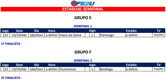 As semifinais da Taça Rio ficaram assim definidas: Volta Redonda (5º do Grupo C) x Macaé (2º do D) e Boavista (6º do C) x Resende (1º do D).