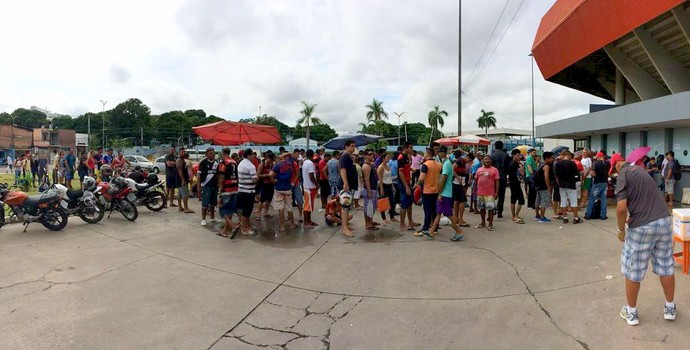 Vasco e Flamengo jogam em Manaus no domingo, pela semifinal do Campeonato Carioca, na Arena da Amazônia. O jogo, confirmado na tarde desta segunda-feira, logo gerou comoção na torcida, que se deslocou - mesmo na incerteza sobre o início das vendas - para a bilheteria e montou acampamento à espera do início da venda dos ingressos. Para não arriscar, muitos chegaram às 22h da segunda-feira, 16 horas antes do início das vendas.