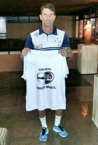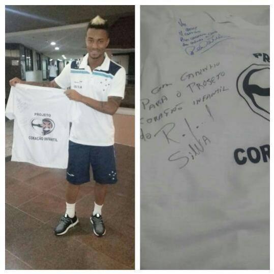 O ex Vasco e atual atacante do Cruzeiro, Rafael Silva, também assinou a camisa do Projeto Coração Infantil.