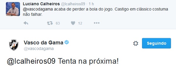 Via Twitter, Vasco responde jornalista que havia dito que time poderia ser castigado por 'perder bola do jogo'