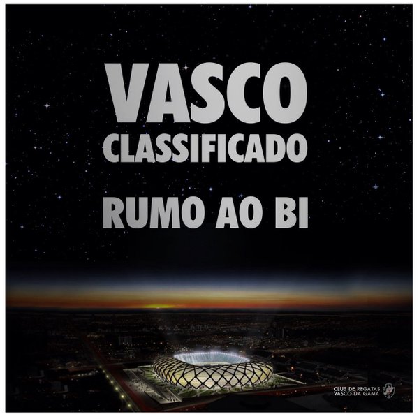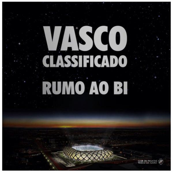 Vasco, via Twitter: 'Classificado. Rumo ao bi'