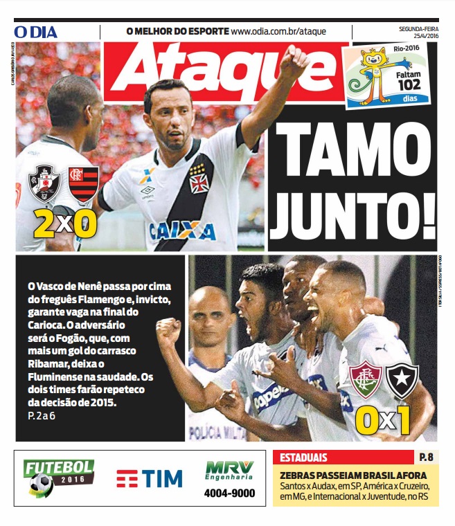 Veja como a imprensa carioca destacou a vitória e a classificação do Vasco diante do Urubu