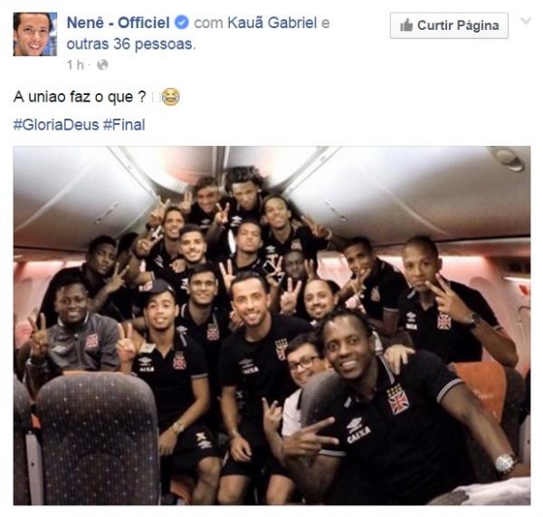 Nenê posta imagem em rede social fazendo referência a Vasco x Urubu