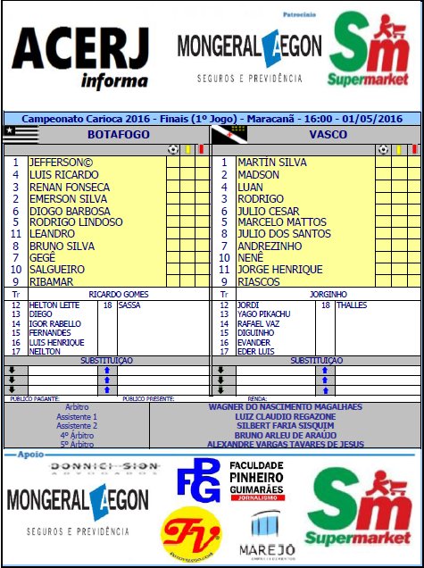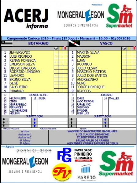 Acerj @acerjrio Escalações de Botafogo x Vasco pelo primeiro jogo da final no Campeonato Carioca 2016