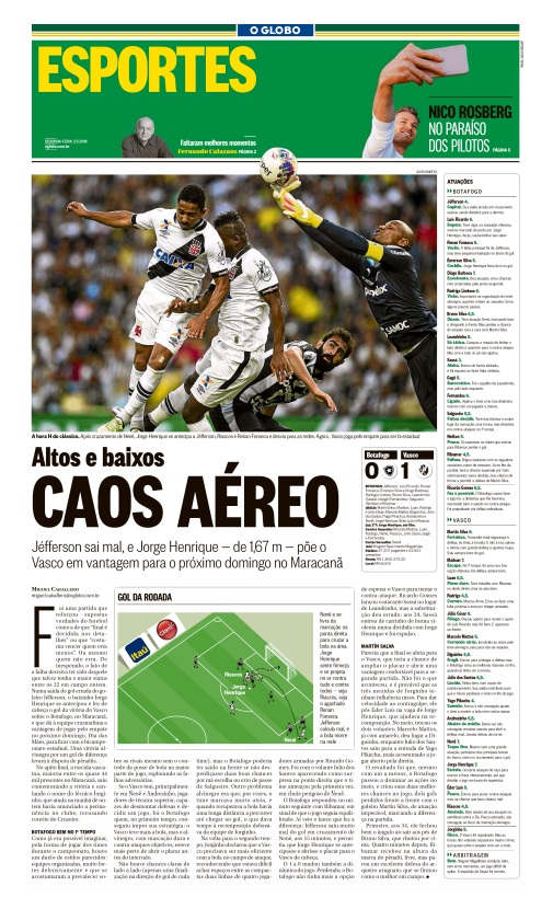 Veja como a imprensa carioca destacou a vitória do Vasco no 1º jogo da decisão