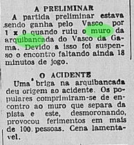 TOV 1945: DESABOU O MURO DA ARQUIBANCADA DO VASCO