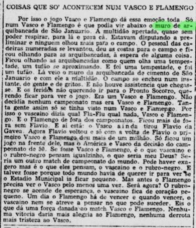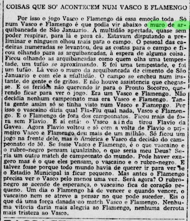 Só num Vasco e Flamengo é que podia vir abaixo o muro de arquibancada de São Januário.
