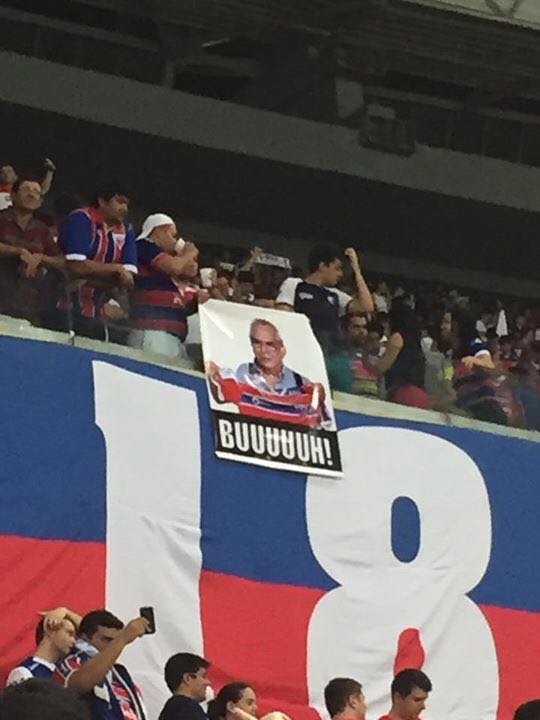 Pela Copa do Brasil, o Fortaleza recebeu o Flamengo na última 4ª-feira (04/05) e venceu por 2 a 1. Os torcedores do time da casa usaram uma foto do presidente vascaíno Eurico Miranda para provocar o Urubu. Veja: