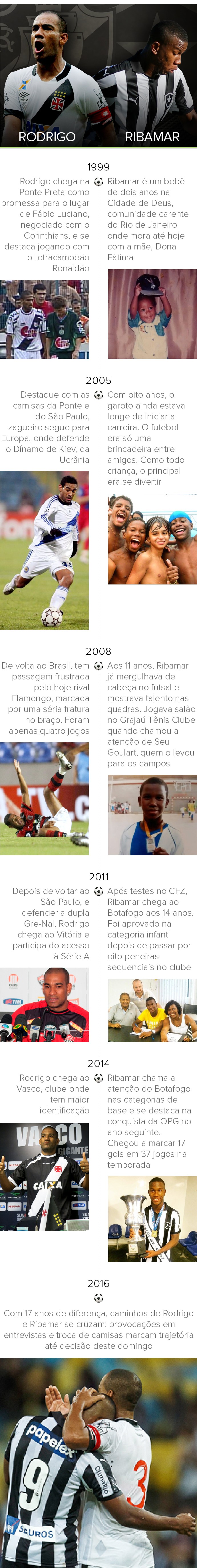 Quase 17 anos separam as histórias do capitão vascaíno da principal revelação do Botafogo na temporada. O GloboEsporte.com preparou uma linha do tempo que mostra os contrastes na vida de ambos até a final de domingo.