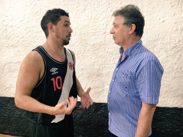 O técnico da Seleção Brasileira, Rubén Magnano, acompanhou a vitória vascaína em São Januário! #GigantedoBasquete