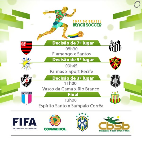 CBSB @BrBeachSoccer DOMINGO DECISIVO! Confira as partidas de amanhã pela #CopaDoBrasilBeachSoccer. Quem será o campeão da etapa?