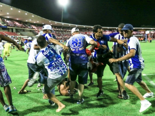 Após o final da partida entre CSA e CRB e que consagrou o Galo bicampeão alagoano, o Estádio Rei Pelé virou uma praça de guerra. Parte da torcida de ambas as equipes invadiram o gramado da partida e protagonizaram cenas lamentáveis, com a PM custando a conter a confusão.