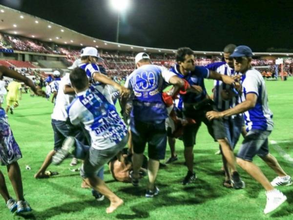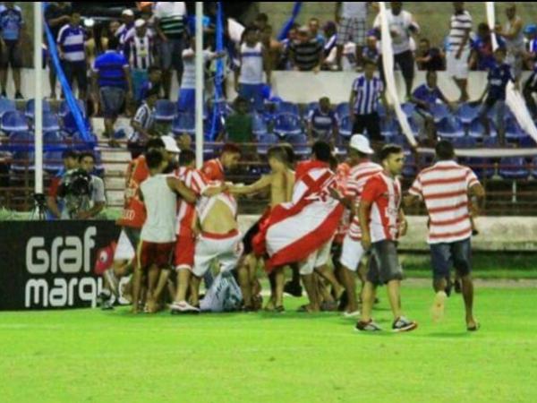Jogadores, imprensa e arbitragem foram surpreendidos com a invasão de torcedores logo quando o árbitro paraense Dewson Freitas encerrou o jogo, com vitória do CRB por 1x0. Um torcedor regatiano foi cercado por um grupo de azulinos e acabou brutalmente agredido. Bastante ferido, ele foi socorrido com suspeita de traumatismo craniano.