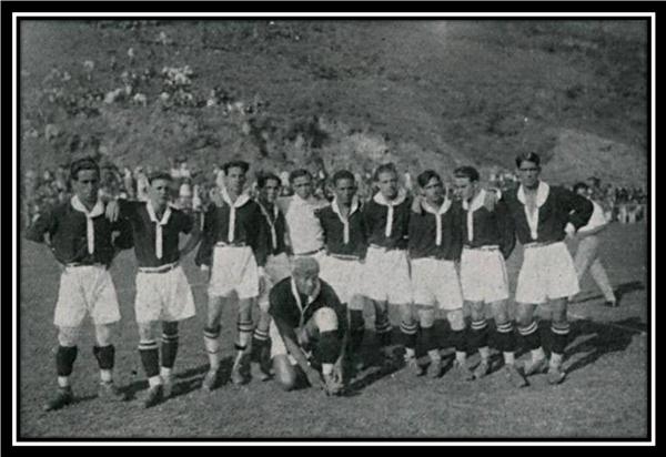 Imagem da equipe que venceu o SC Mangueira pelo placar de 3 a 0, no dia 27 de julho de 1924. Da esquerda para a direita (Em pé): Leitão, Mingote, brilhante, Negrito, Nelson, Cecy, Russinho, Arthur, Paschoal e Torterolli. Agachado: Bolão. O Malho, Rio de Janeiro, 02 de agosto de 1924, p. 35