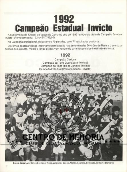 [1] O Vasco sagrou campeão no dia 24 de novembro de 1992, ao vencer o Bangu por 1 a 0, no Estádio de São Januário. O Vasco conquistou tanto a Taça Guanabara quanto a Taça Rio, sendo Campeão Carioca de forma direta, sem a necessidade de jogos finais.