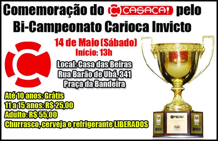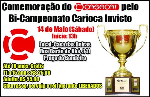 O Casaca! convida a todos os torcedores, sócios, membros da diretoria, Beneméritos e Grandes Beneméritos, conselheiros e funcionários do clube para o evento de comemoração do brilhante título carioca invicto conquistado pelo CR Vasco da Gama.