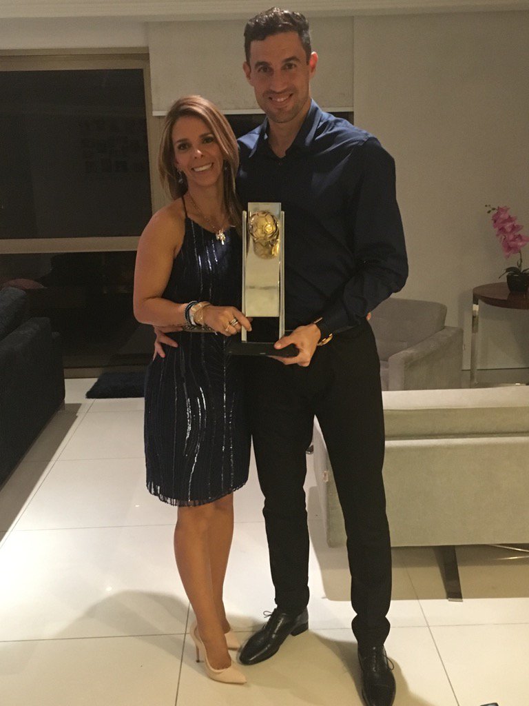 Premiação do Estadual teve Rafael Vaz em clima de romantismo com a esposa e 'canja' de Nenê