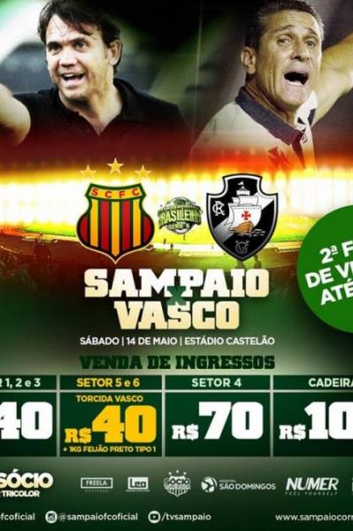 Os preços variam entre R$ 40 (R$ 20 a meia-entrada) e R$ 100 (R$ 50 a meia-entrada). A torcida do Vasco terá que doar um quilo de feijão preto tipo 1 - está especificado no site do time maranhense - para complementar a compra do bilhete.