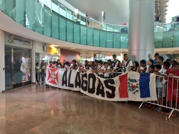 Torcedores aguardam o Vasco em Maceió. Chegada prevista para 17:30 (de Brasília) #gevas