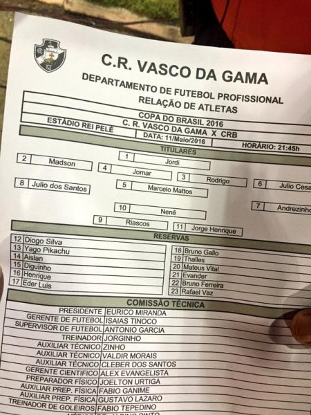 Cahê Mota @cahemota Vasco confirmado: Martin e Luan fora; Jordi e Jomar substitutos #gevas