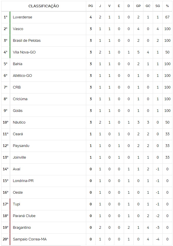 Resultados de 3ª-feira pela 2ª rodada do Brasileiro da Série B: Bragantino 0 x 1 Luverdense e Náutico 3 x 2 Vila Nova