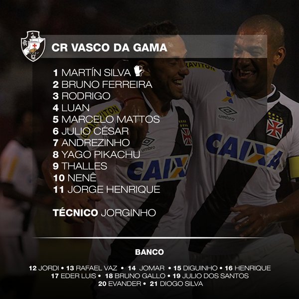 Vasco da Gama @vascodagama Escalação oficial do Vasco para a partida contra o CRB. #VASxCRB