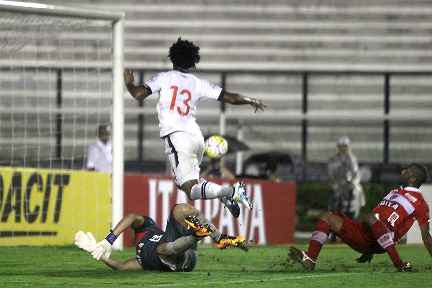 O time carioca não se assustou e ,aos dez minutos, Jorge Henrique enfiou para Nenê, mas o goleiro Juliano saiu com precisão e ficou com a bola.