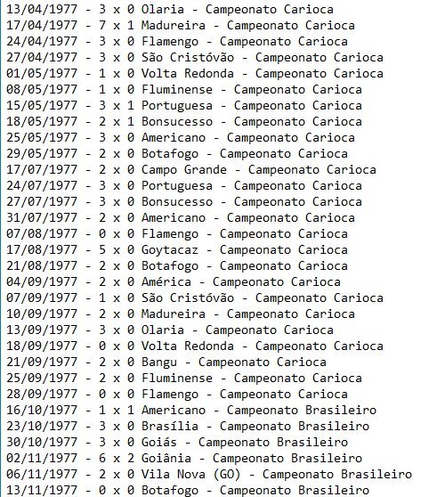 Série invicta de 31 jogos oficiais do Vasco em 1977: