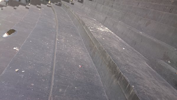 Nesse momento, no setor de arquibancada atrás do gol, acabou de cair um pequeno pedaço da marquise de São Januário #trVAS