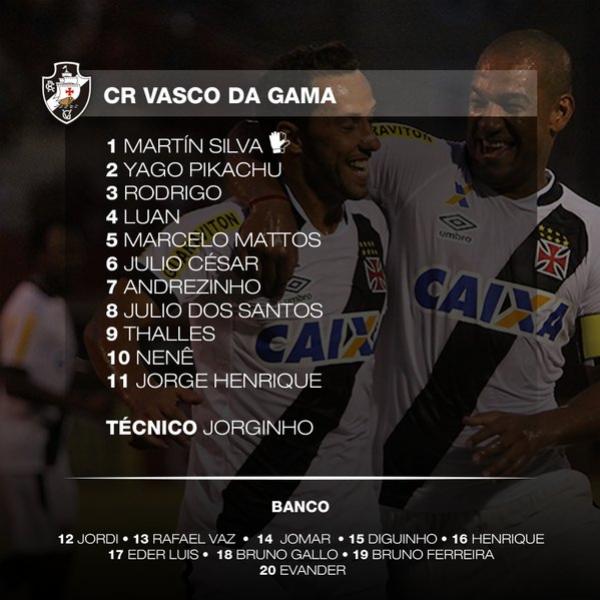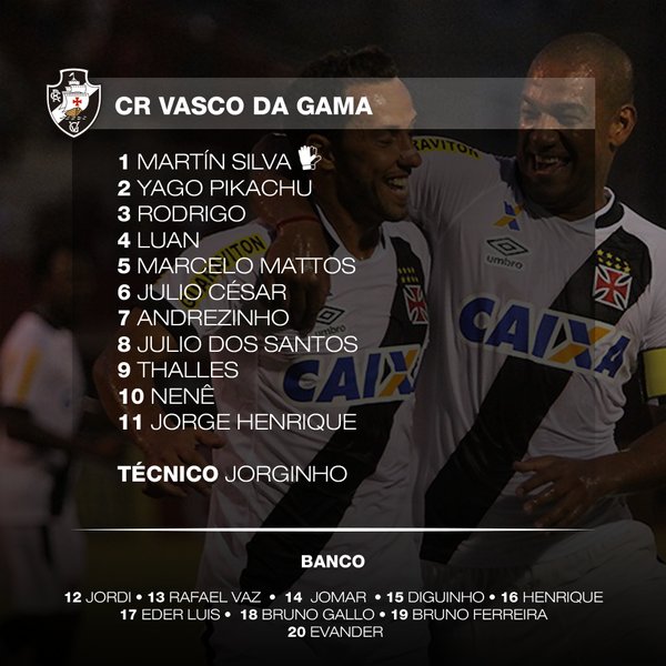 Vasco da Gama @vascodagama Escalação oficial do Vasco para o duelo contra o Tupi. #VASxTUP
