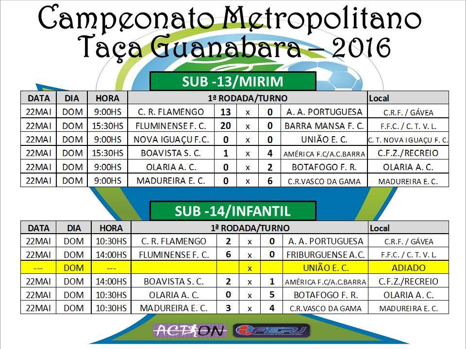 RESULTADOS DOS JOGOS SUB-13 E SUB-14.