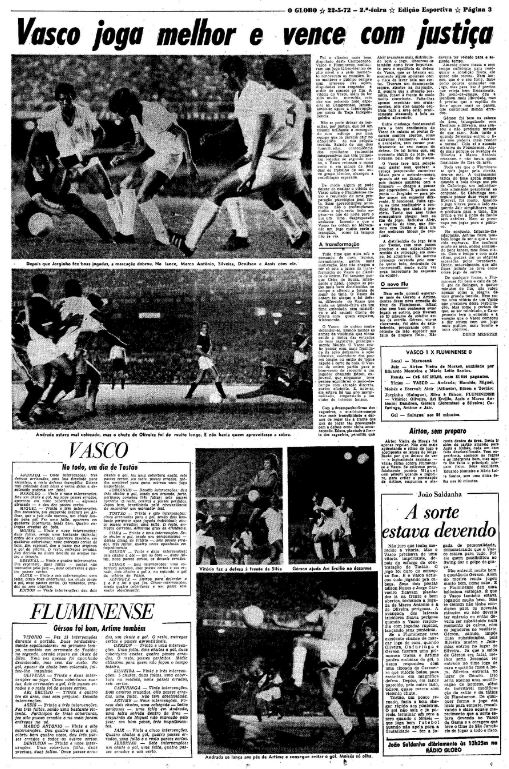 Vasco hoje (21/05/1972) – Vitória no swing certo