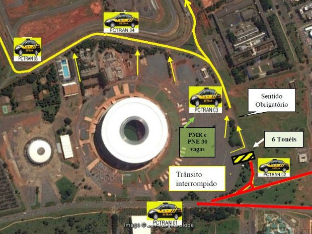 Os agentes do Detran vão controlar o tráfego de veículos nos acessos aos estacionamentos do estádio na via N1, na rotatória da N2 e na avenida que contorna o autódromo.