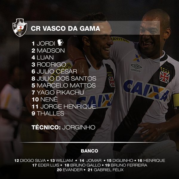 Confira escalação do Vasco; Madson volta ao time e Yago Pikachu substitui Andrezinho