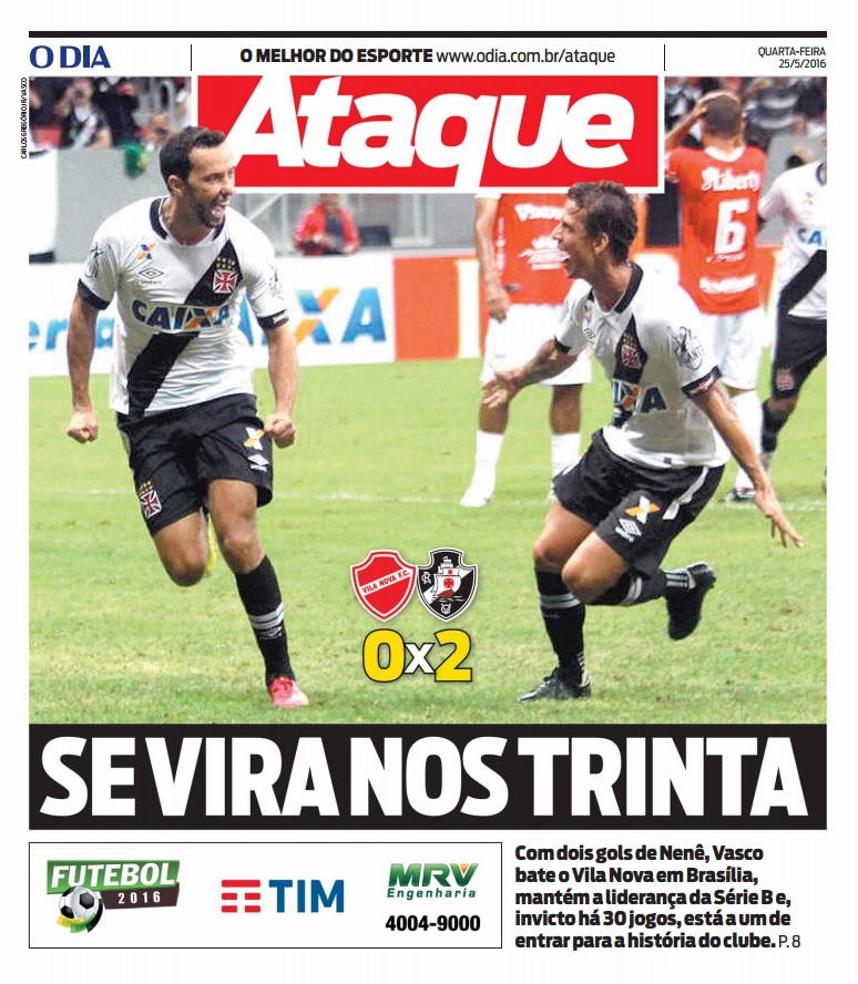 Veja como a imprensa destacou a vitória sobre o Vila Nova e o 30º jogo invicto do Vasco