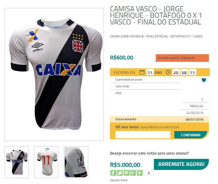 Camisa usada por Jorge Henrique no 1º jogo da final do Estadual contra o Botafogo é leiloada