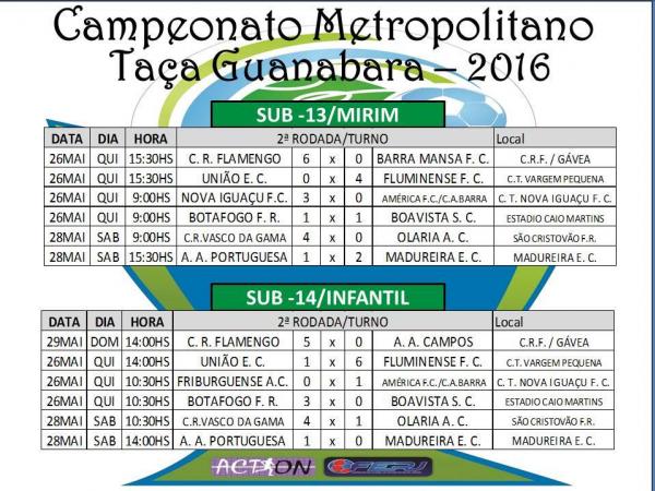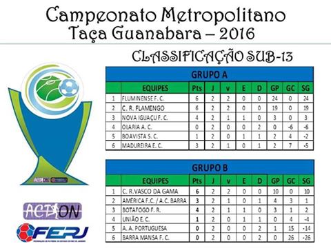 Os resultados do fim de semana fizeram o Vasco encerrar a rodada entre os líderes do primeiro turno do Metropolitano. Com duas vitórias, 10 gols marcados e nenhum sofrido, o sub-13 é a equipe de melhor rendimento no Grupo B da Taça Guanabara. O sub-14 está na segunda colocação, mas possui o mesmo número de pontos do líder Botafogo.