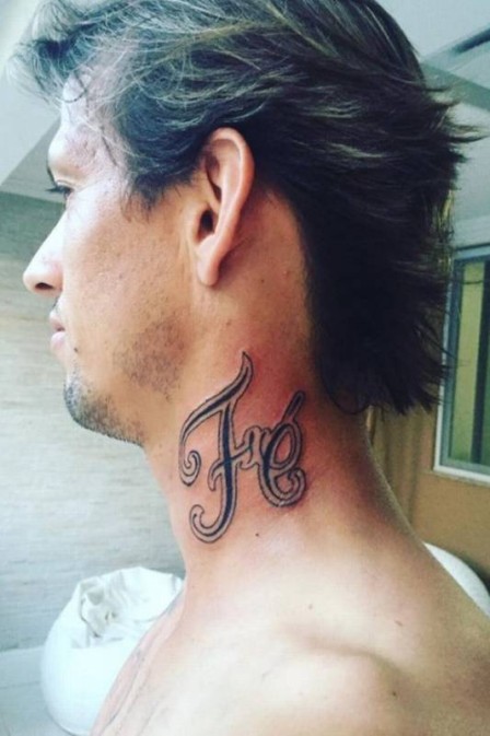 O volante Diguinho, do Vasco, usou o Instagram nesta segunda-feira para mostrar sua nova tatuagem. Ele gravou no pescoço a palavra “Fé”.