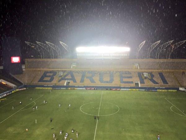 Cahê Mota @cahemota Chuva começa a apertar na Arena Barueri. Oeste e Vasco vão jogar para estádio praticamente vazio #trbarueri