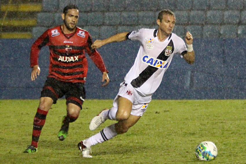 O Vasco não repetia suas últimas atuações e só Nenê aparecia. Eder Luis e Thales quase não participavam do jogo, irritando o técnico Jorginho que reclamava muito do posicionamento dos seus atacantes. Só aos 41 minutos é que o Vasco voltou a incomodar. Após passe de Nenê, Jorge Henrique bateu cruzado e Felipe Alves fez grande defesa, impedindo o segundo gol da equipe carioca.