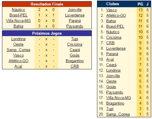 Fonte: NETVASCO (texto), Infobola (tabela, classificação)