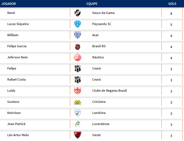 Com 8 gols marcados, Nenê é o artilheiro isolado do campeonato, 3 gols à frente de seu perseguidor mais próximo.