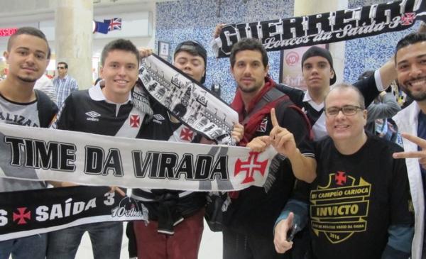 O desembarque da delegação vascaína foi tranquilo, e os jogadores entraram no clima de festa junto com os torcedores, que cantaram: “Urubu, pode esperar, a sua hora vai chegar”.