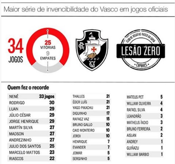 Parabéns a todos nós, principalmente aos atletas, por conseguirmos escrever nossos nomes numa história tão incrível como a do Club de Regatas Vasco da Gama. #gigantedacolina #caprres #lesãozero #crvg #34jogosinvictos