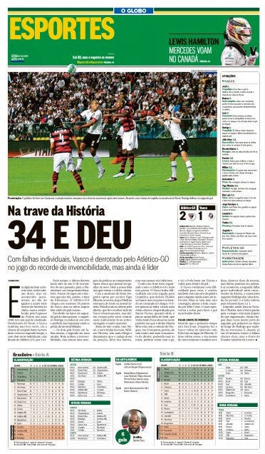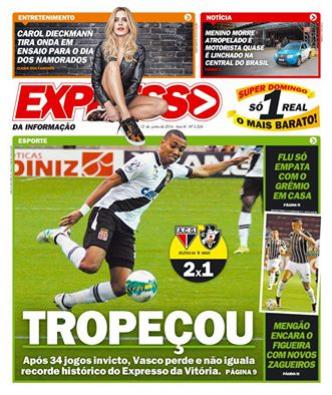 Veja como a imprensa destacou a perda da invencibilidade do Vasco